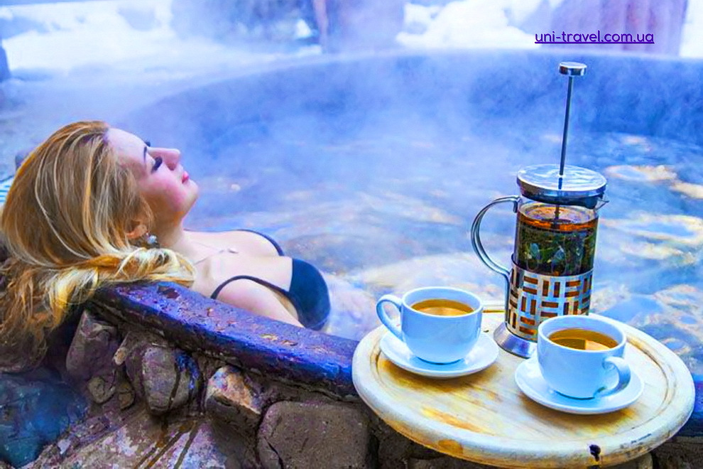 Простота процесса удивит: железный чан, подогреваемый дровами. Нужен час, чтобы прогреть воду, которая вытекает холодной из-под земли, но со временем нагревается почти до 40 градусов. Такой отдых не только оставит незабываемый след в вашей памяти, но будет способствовать оздоровлению мышечно-скелетной системы и омолодит тело. Эта процедура рекомендована почти всем, кто не имеет весомых здравых противопоказаний, а перепады температур тренируют сердечно-сосудистую систему. В чане следует провести не более 10 минут, после чего можно освежиться в ледяной реке. Больше часа в таком ритме вы не продержитесь, но это время станет невероятно полезным и экзотическим опытом!